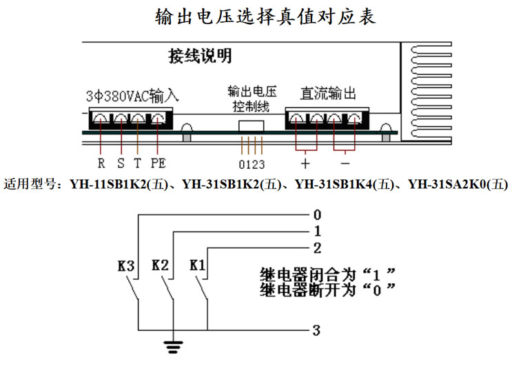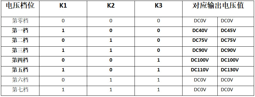 输出电压:五档电压由四位数据线(二进制)进行选择输出